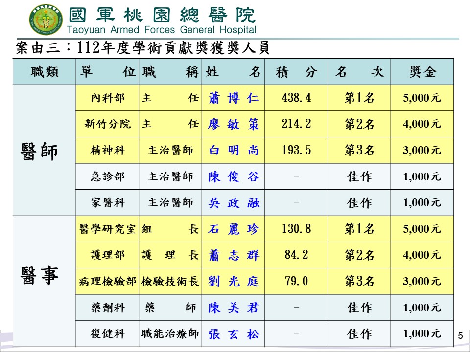 112年優良教師、教案獎勵、學術貢獻獲獎名冊